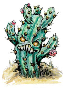 Green Cactus with yellow/amber eyes and sharp teeth. 5 arms